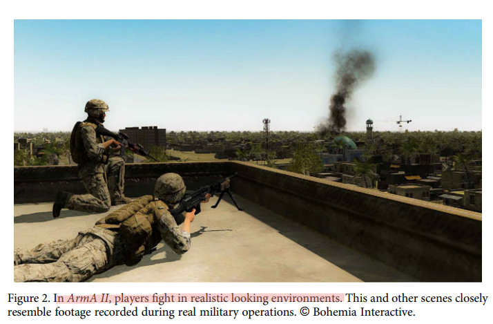 This portrayal has been deemed, by the International Committee of the Red Cross, to be particularly dangerous and worrying because of the interconnections between the video game industry and military apparatus in countries like the United States of America, for example, in which video games are sometimes used as a recruitment tool for the army and where the video game industry regularly receives input from ex-military personnel who served on contemporary battlefields to craft their games and make them increasingly realistic.